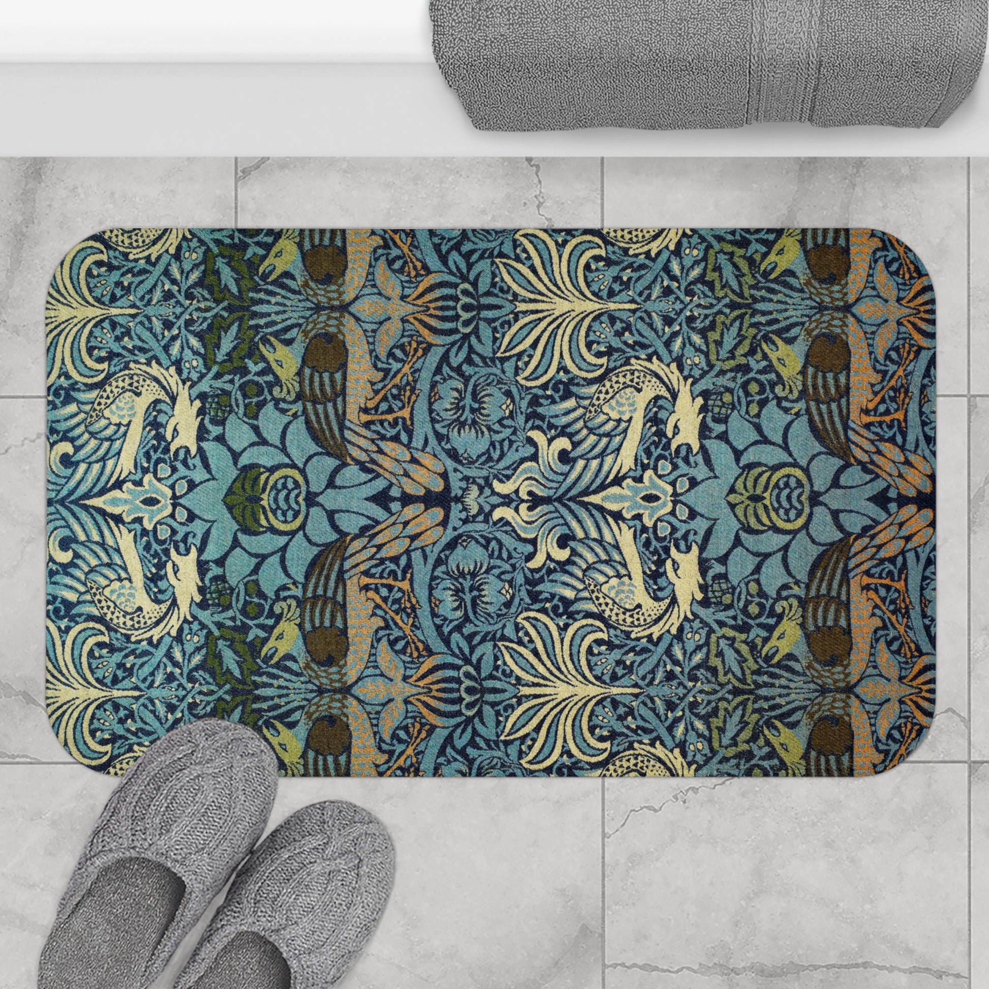 Bath Mat inspired by William Morris - Peacock and Dragon Collection