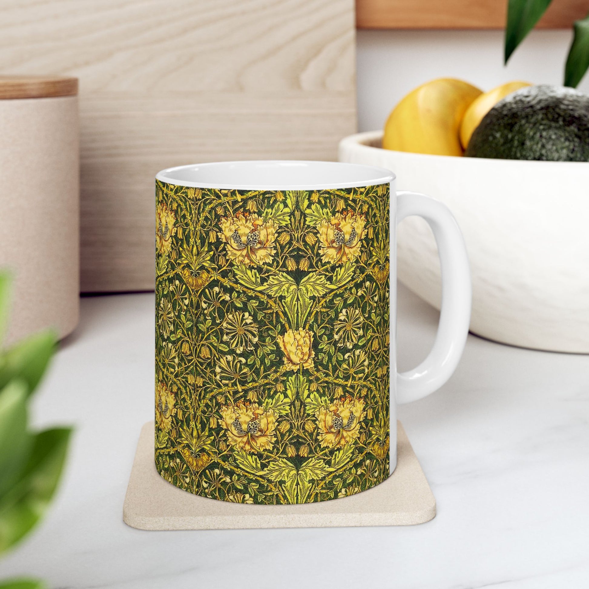 Bring timeless elegance to your daily coffee or tea ritual with these William Morris-inspired Ceramic Mugs from Willy Morris Home Emporium. Crafted from durable white ceramic, these mugs showcase exquisite designs that pay homage to Morris’s iconic artistry. With a shiny finish and a comfortable C-handle, they combine beauty with practicality, making them perfect for everyday use or as a thoughtful gift. Available in two sizes - 11oz (0.33 l) and 15oz (0.44 l) - you can enjoy the perfect portion of your favourite beverage.