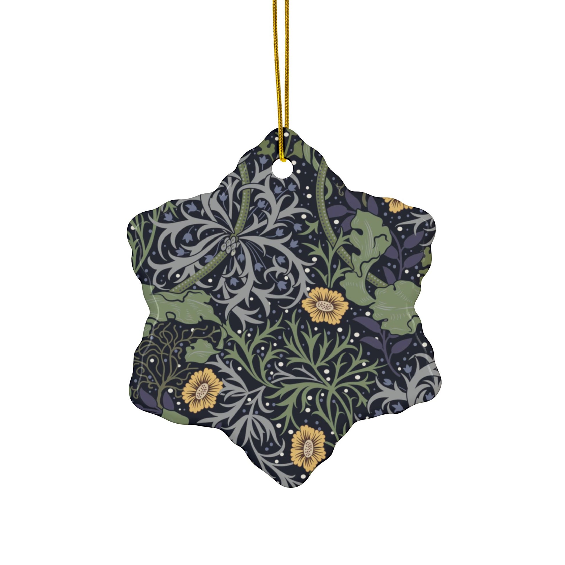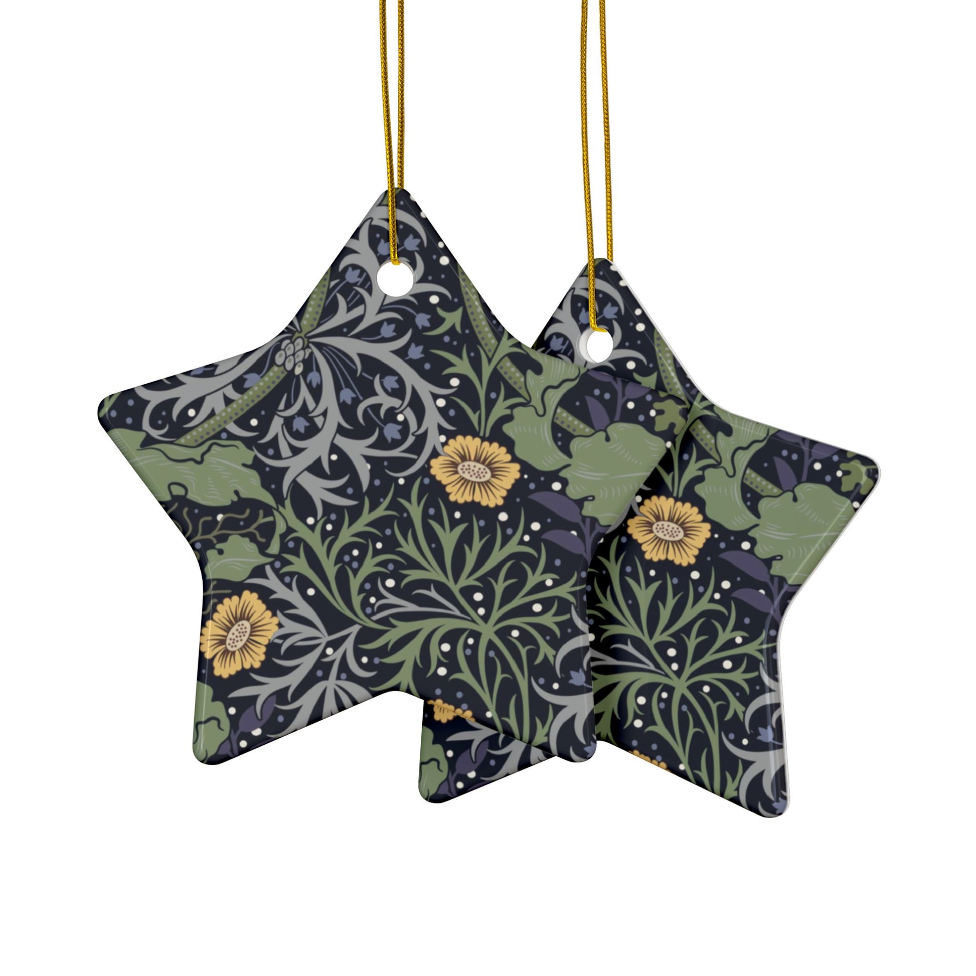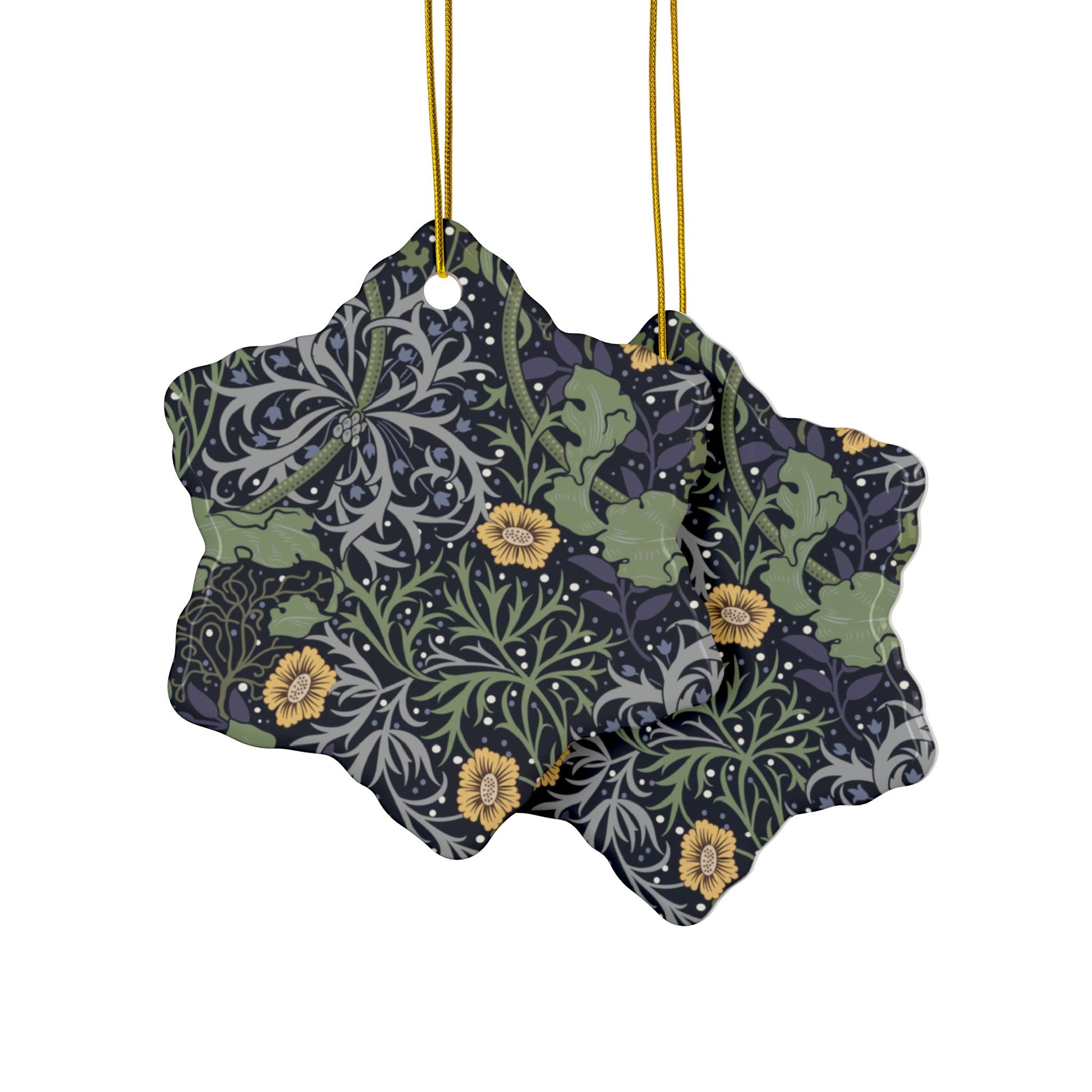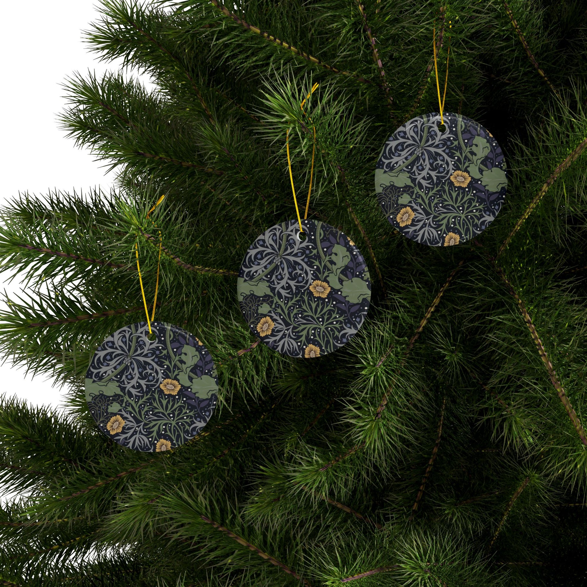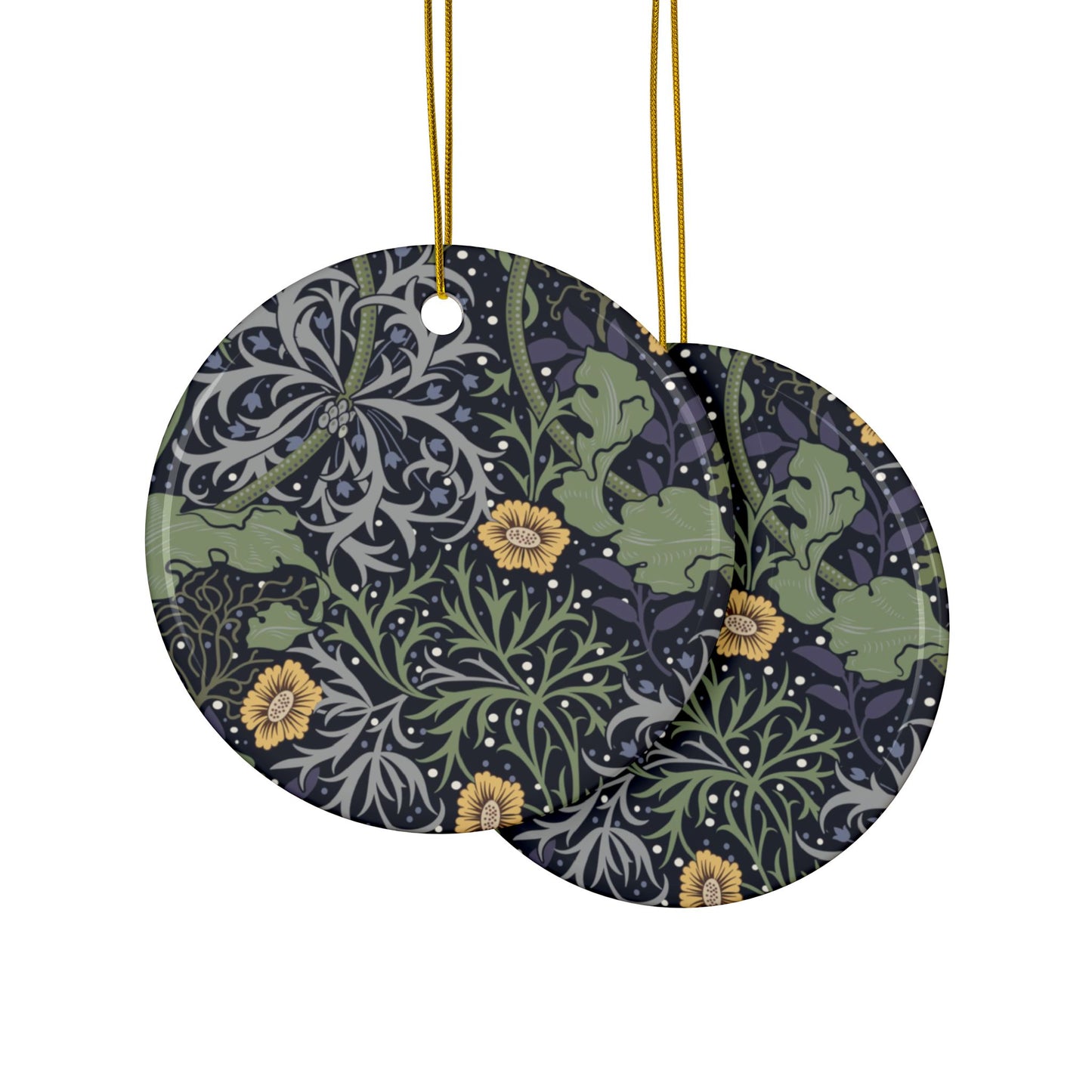 Ceramic Christmas Ornaments inspired by William Morris - Seaweed Collection (Yellow Flower) - Double Sided Print: 1pc, 3pcs, 5pcs, 10pcs