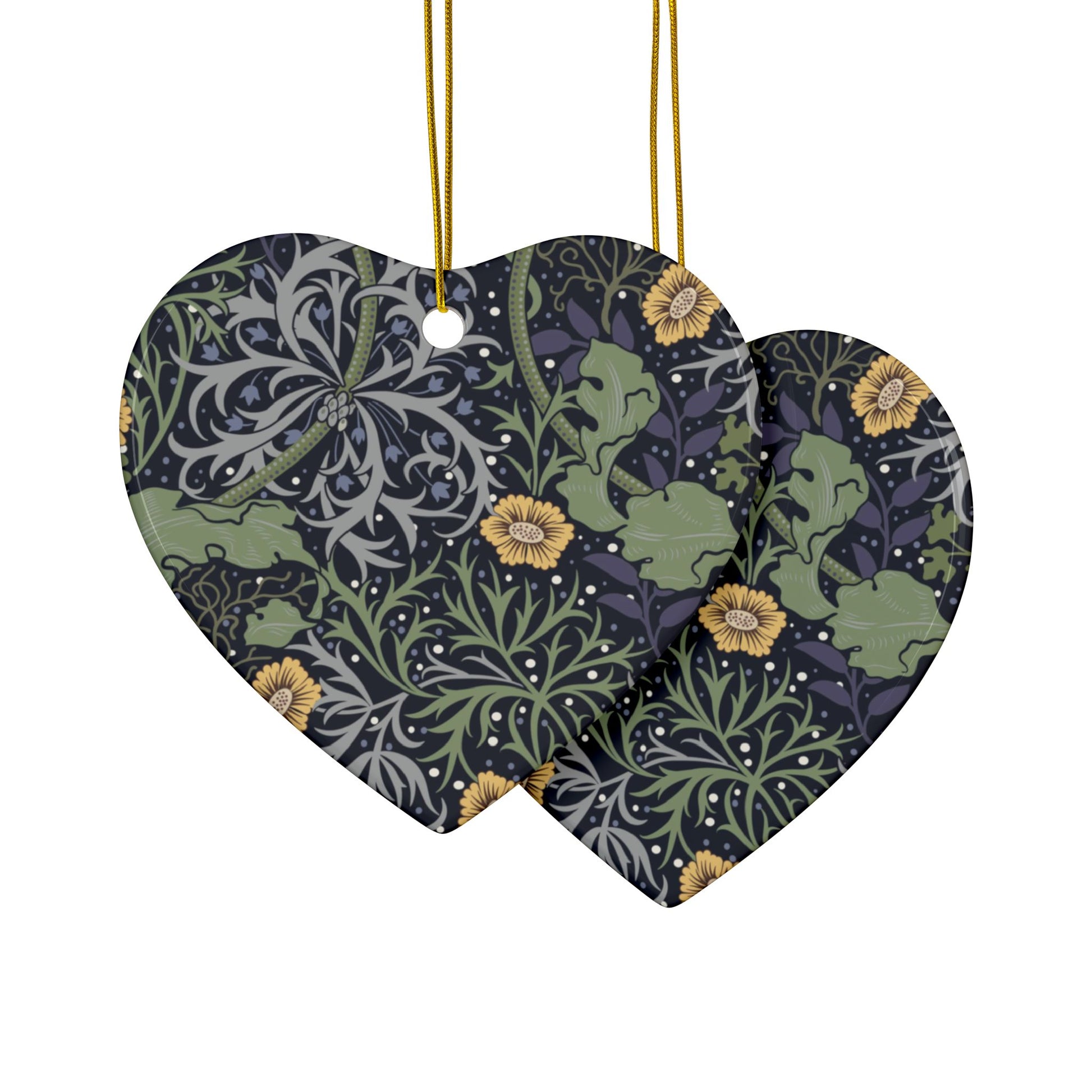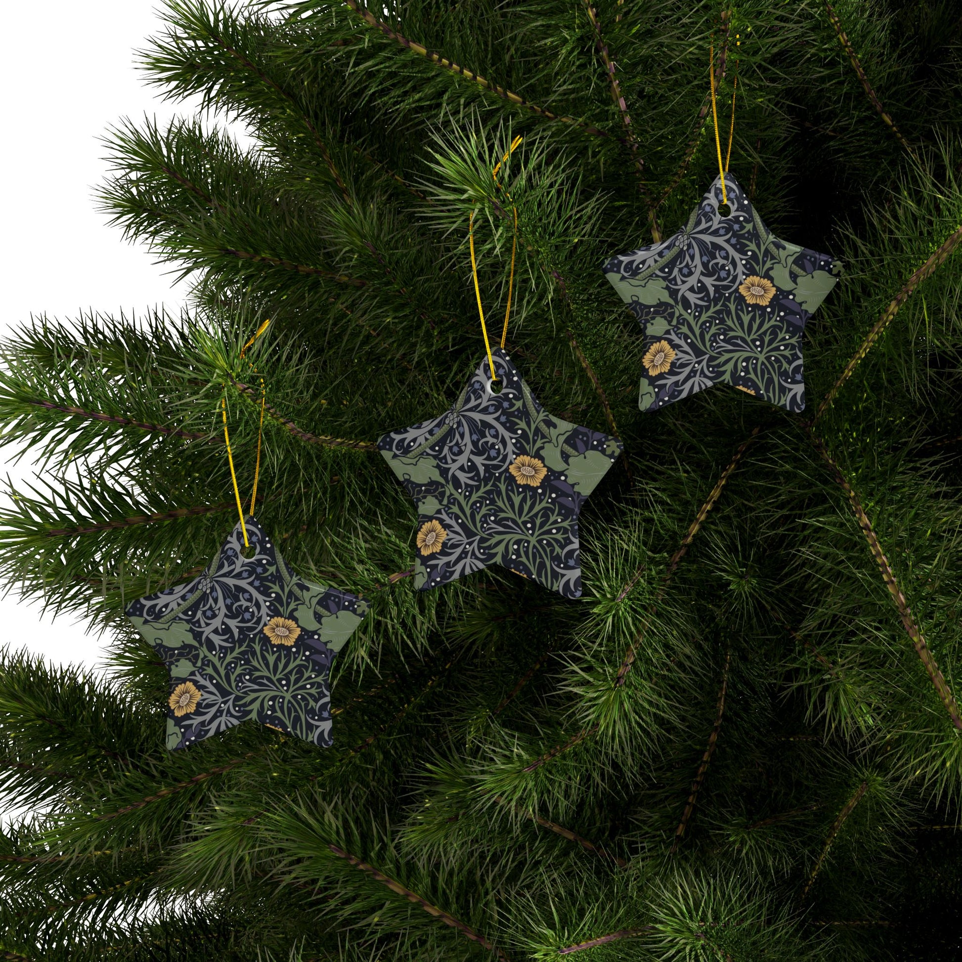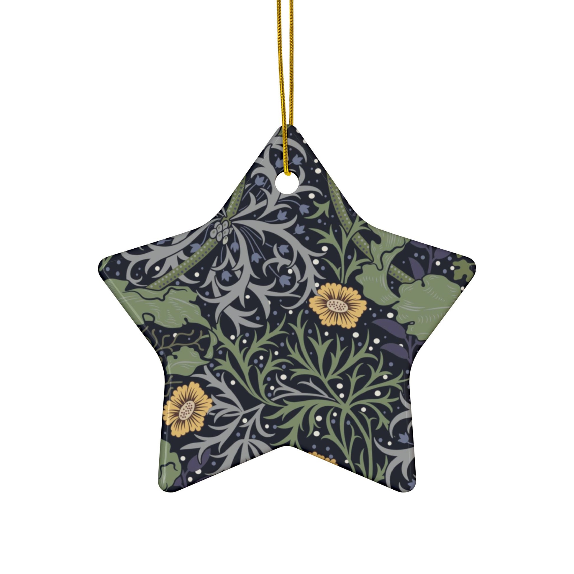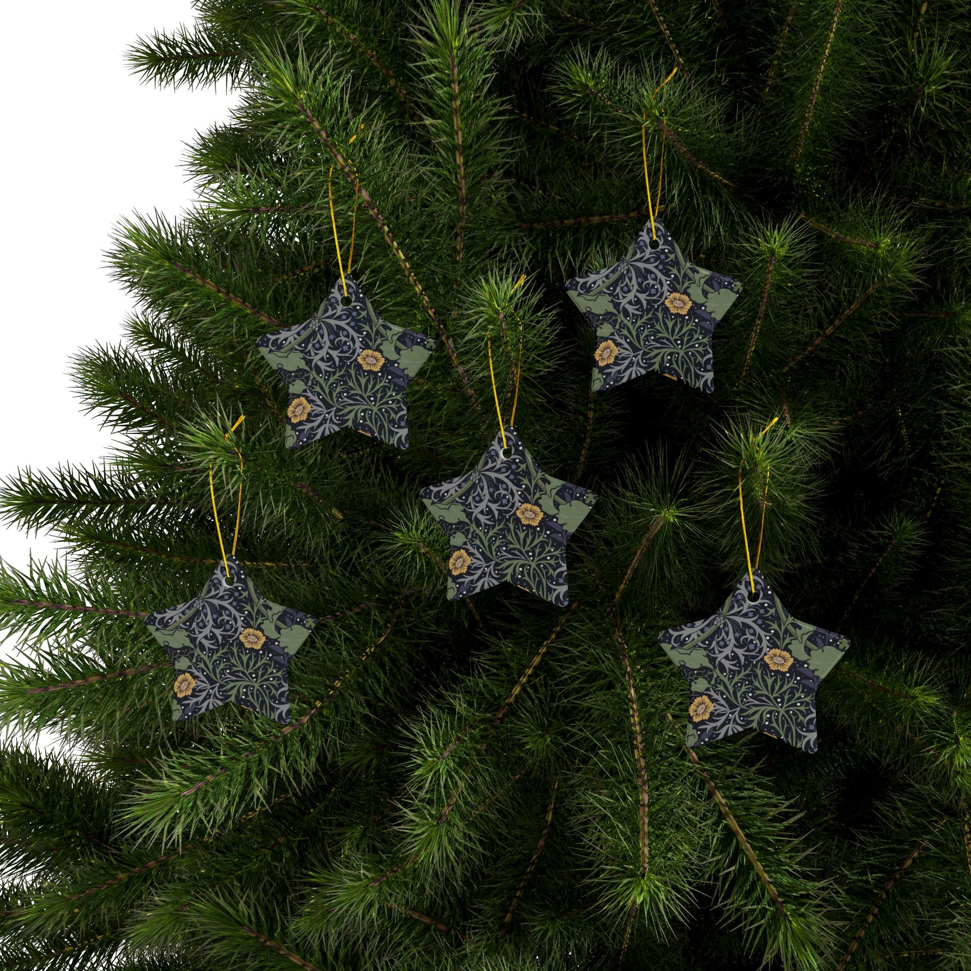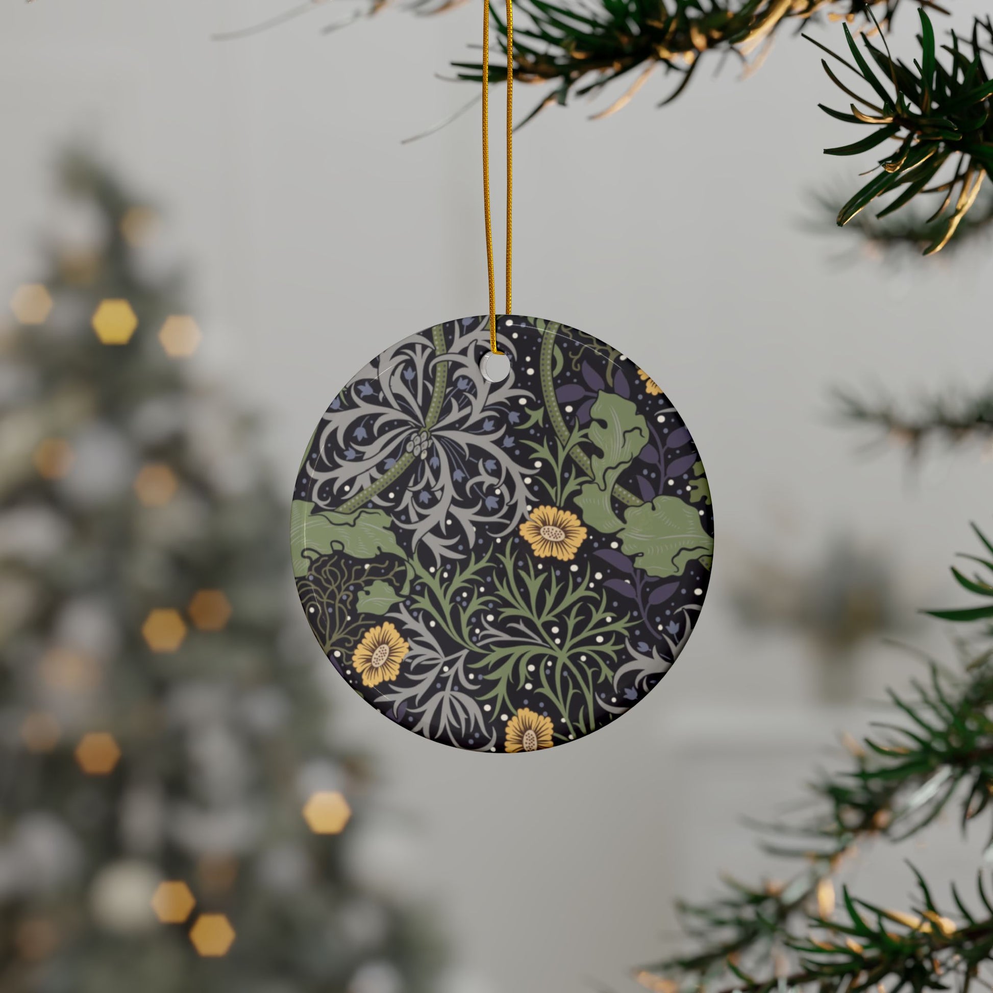 Ceramic Christmas Ornaments inspired by William Morris - Seaweed Collection (Yellow Flower) - Double Sided Print: 1pc, 3pcs, 5pcs, 10pcs