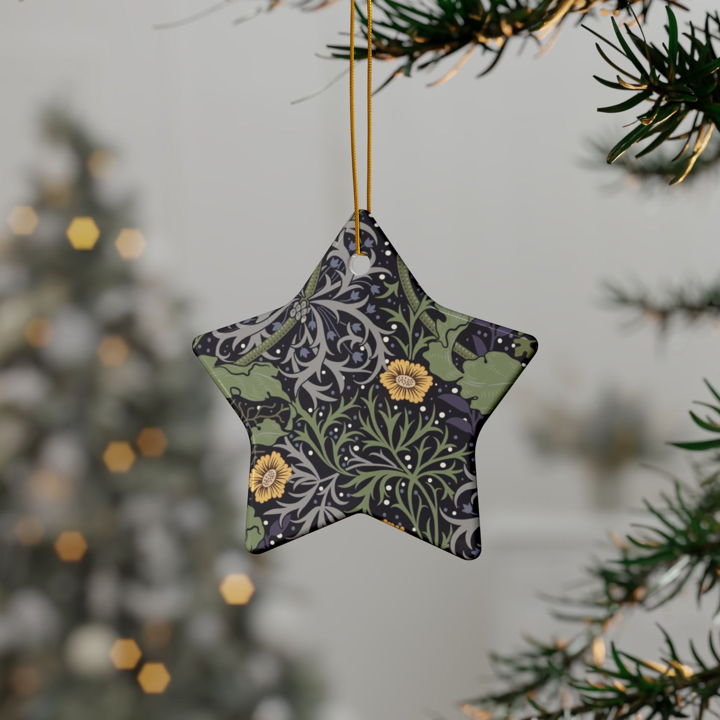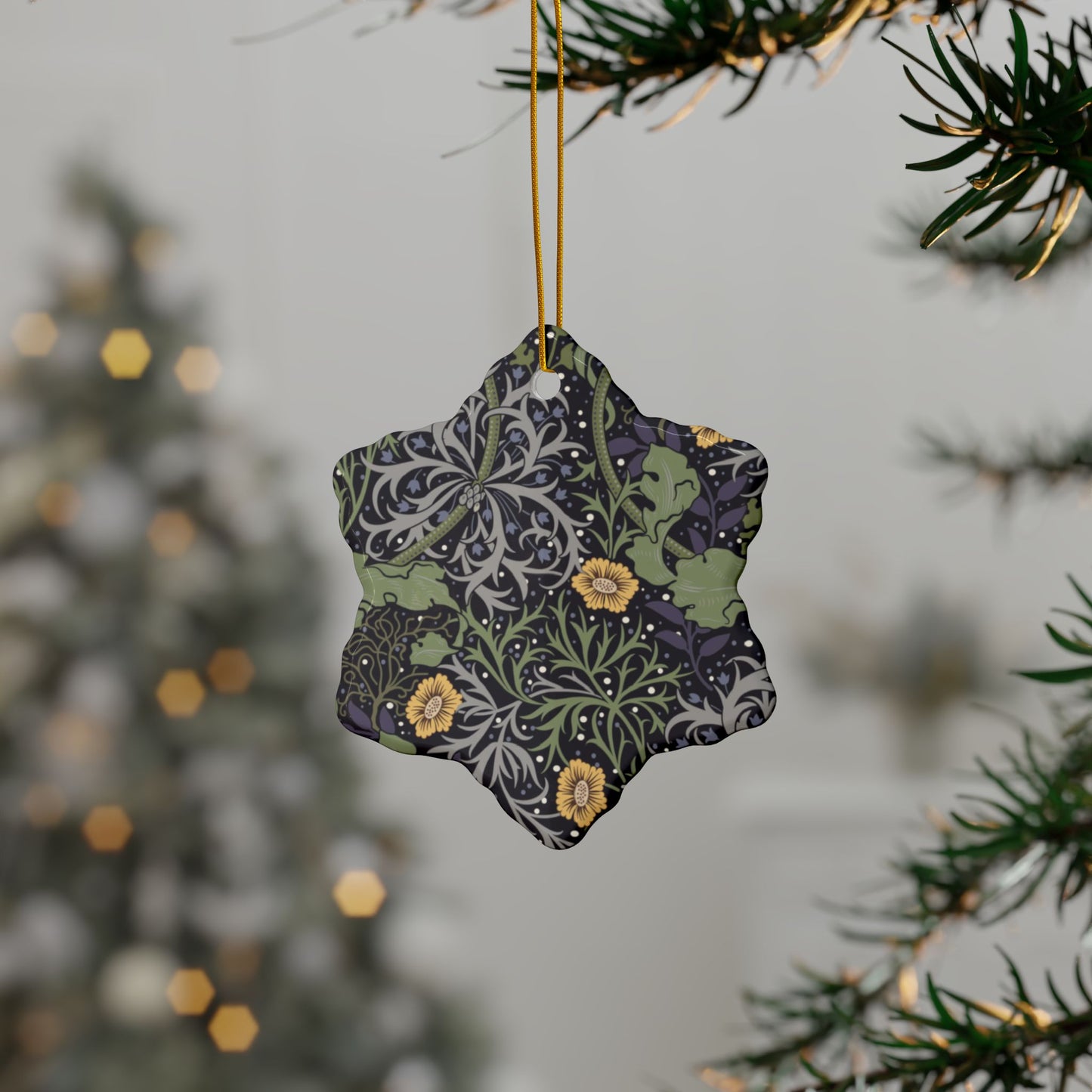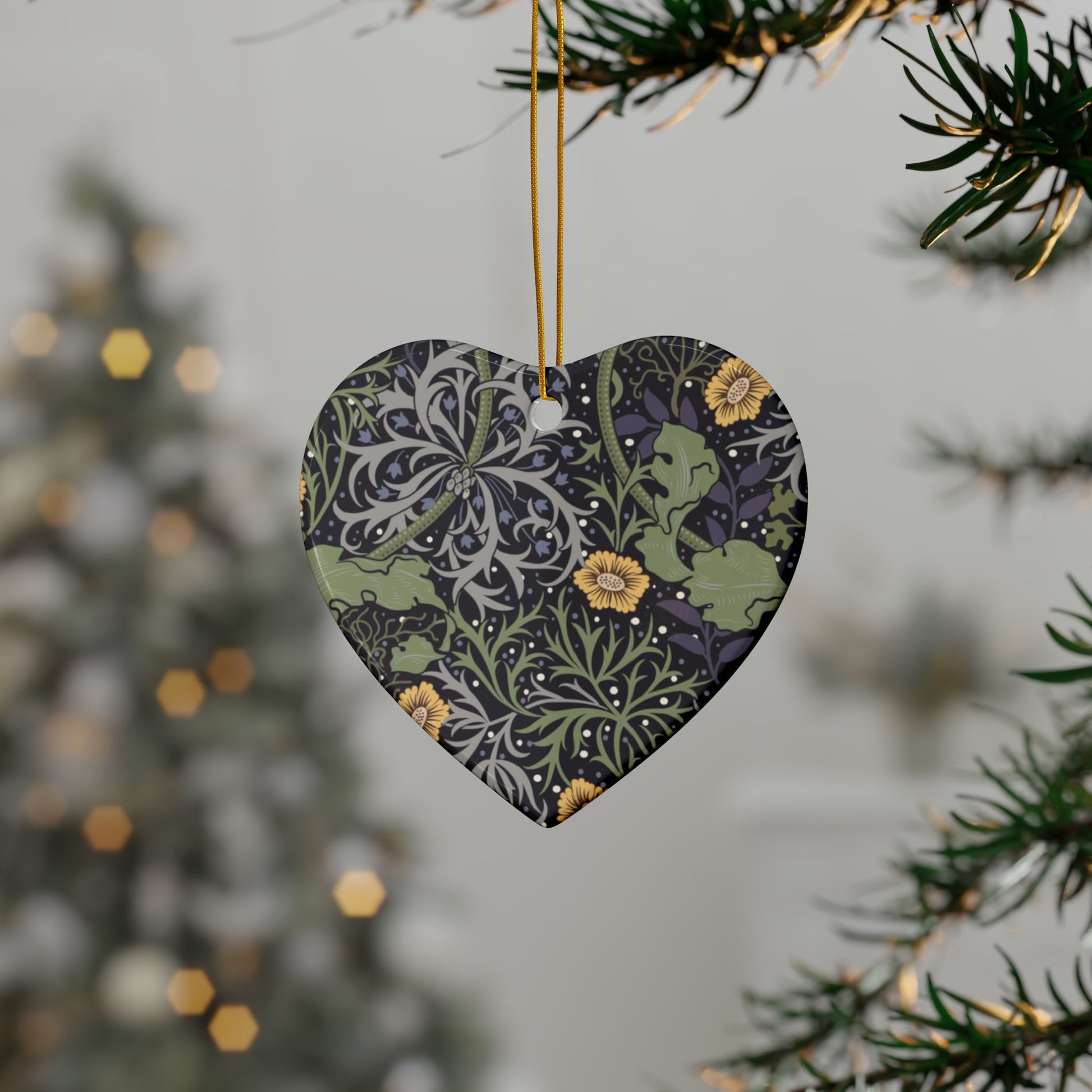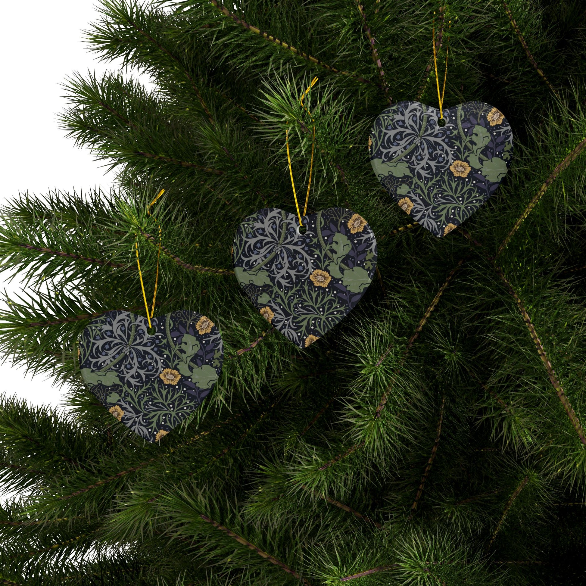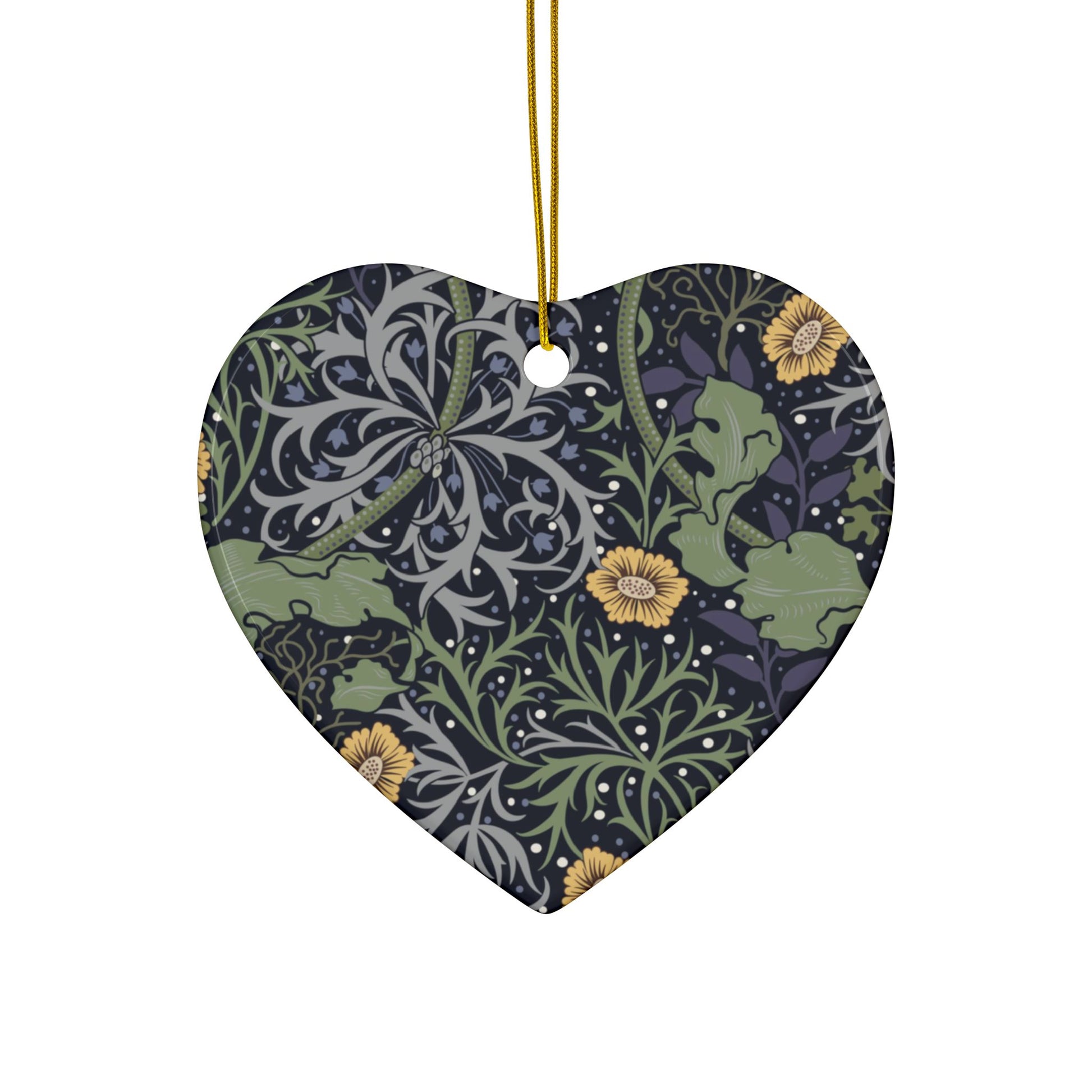 Ceramic Christmas Ornaments inspired by William Morris - Seaweed Collection (Yellow Flower) - Double Sided Print: 1pc, 3pcs, 5pcs, 10pcs