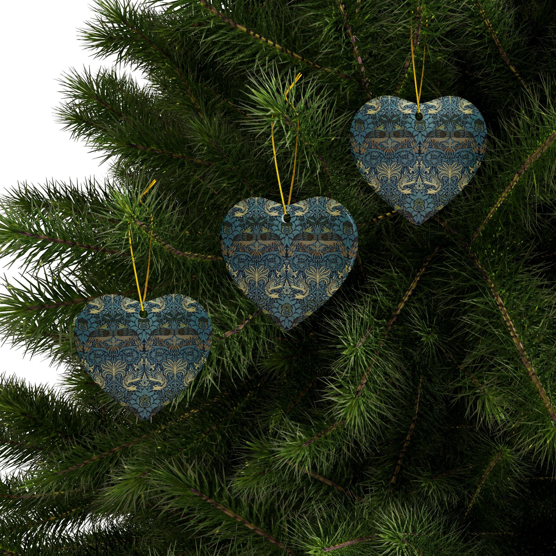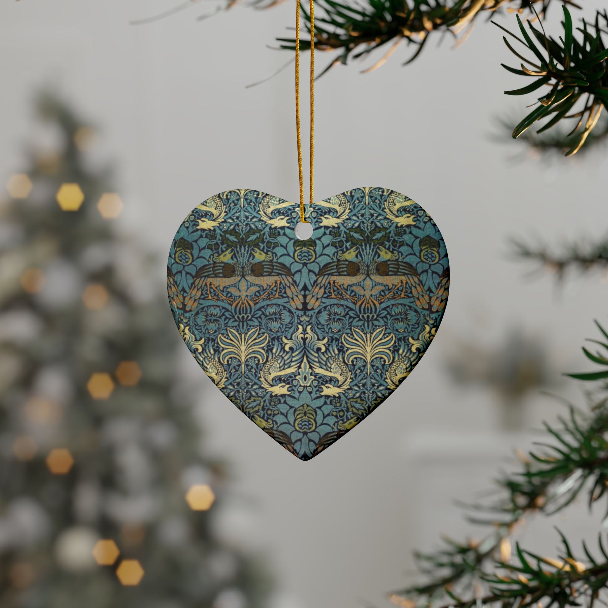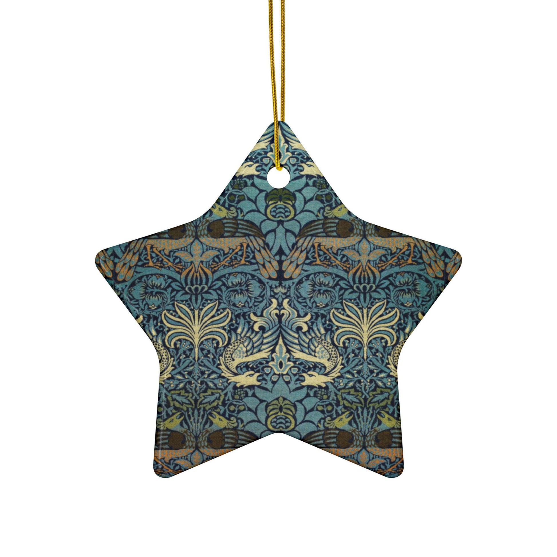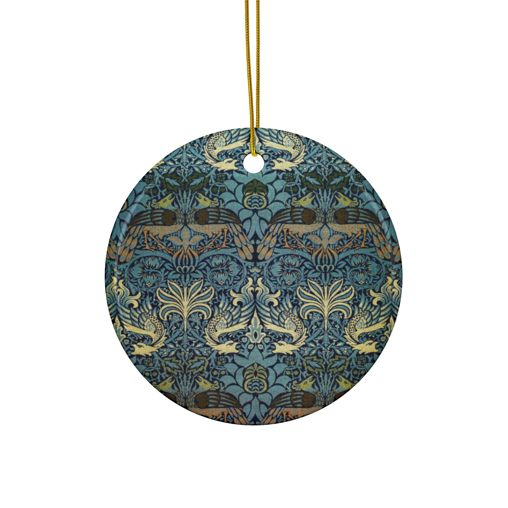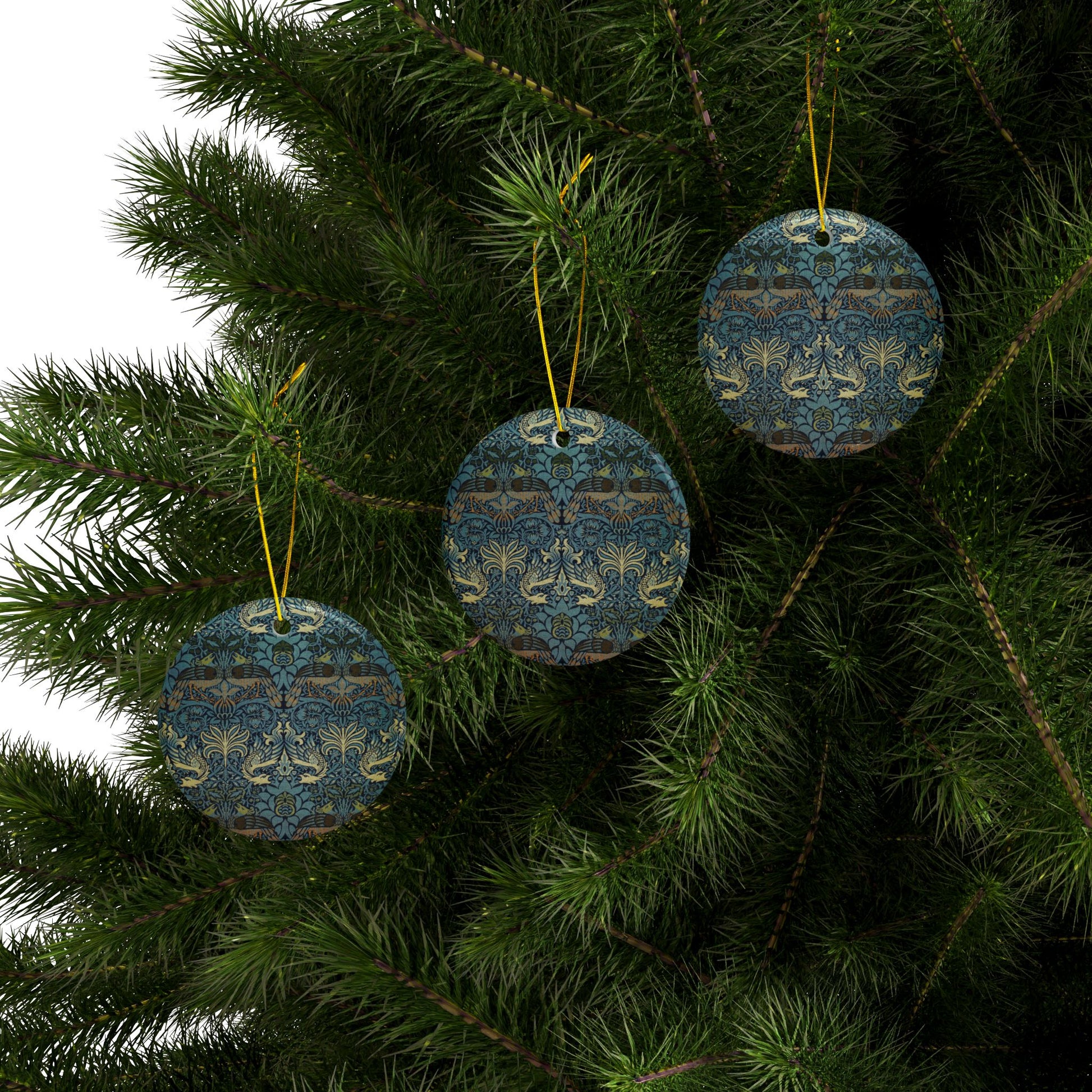 Ceramic Christmas Ornaments inspired by William Morris - Peacock & Dragon Collection - Double Sided Print: 1pc, 3pcs, 5pcs, 10pcs