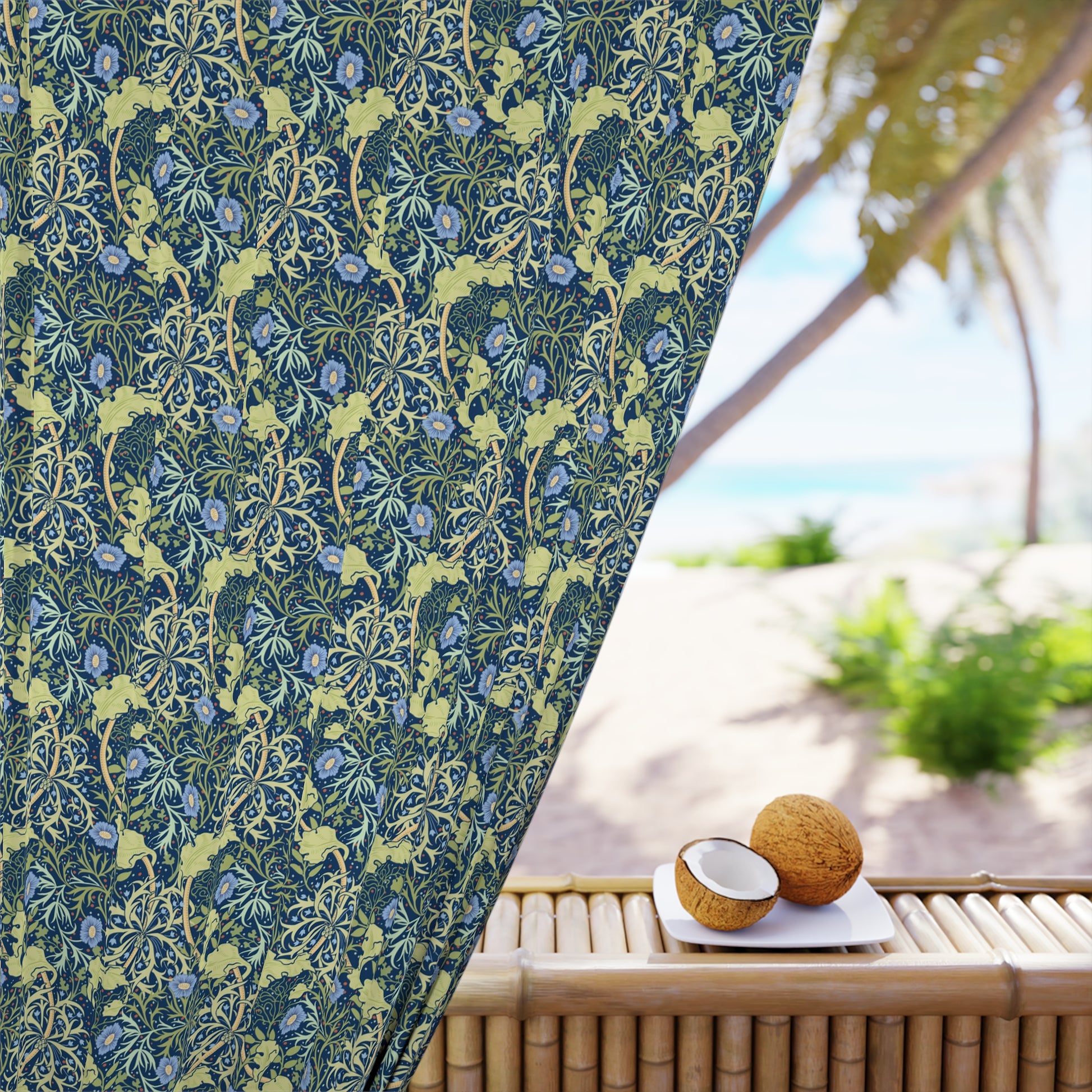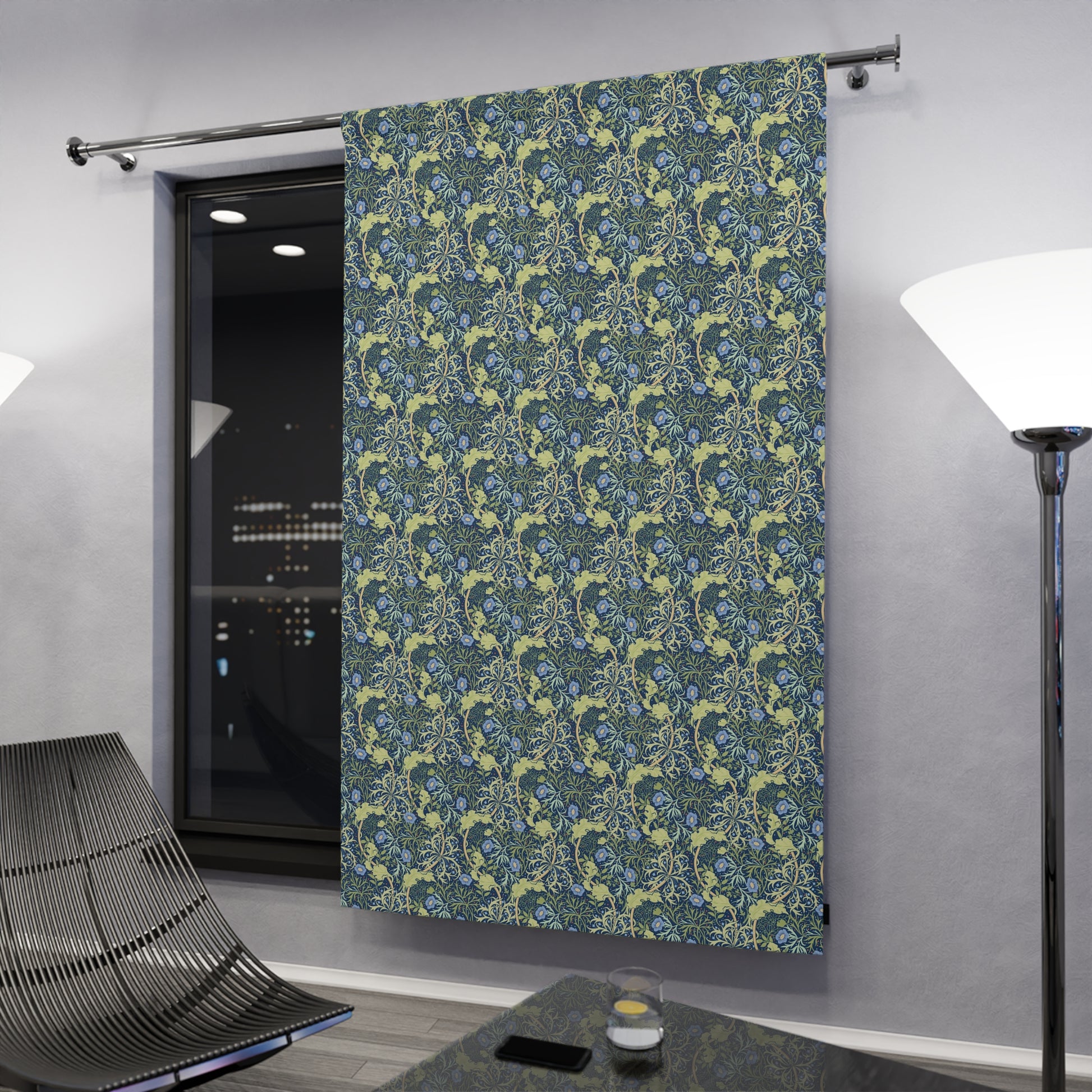 Blackout Window Curtain inspired by William Morris (1 Piece) - Seaweed Collection (Blue Flower)