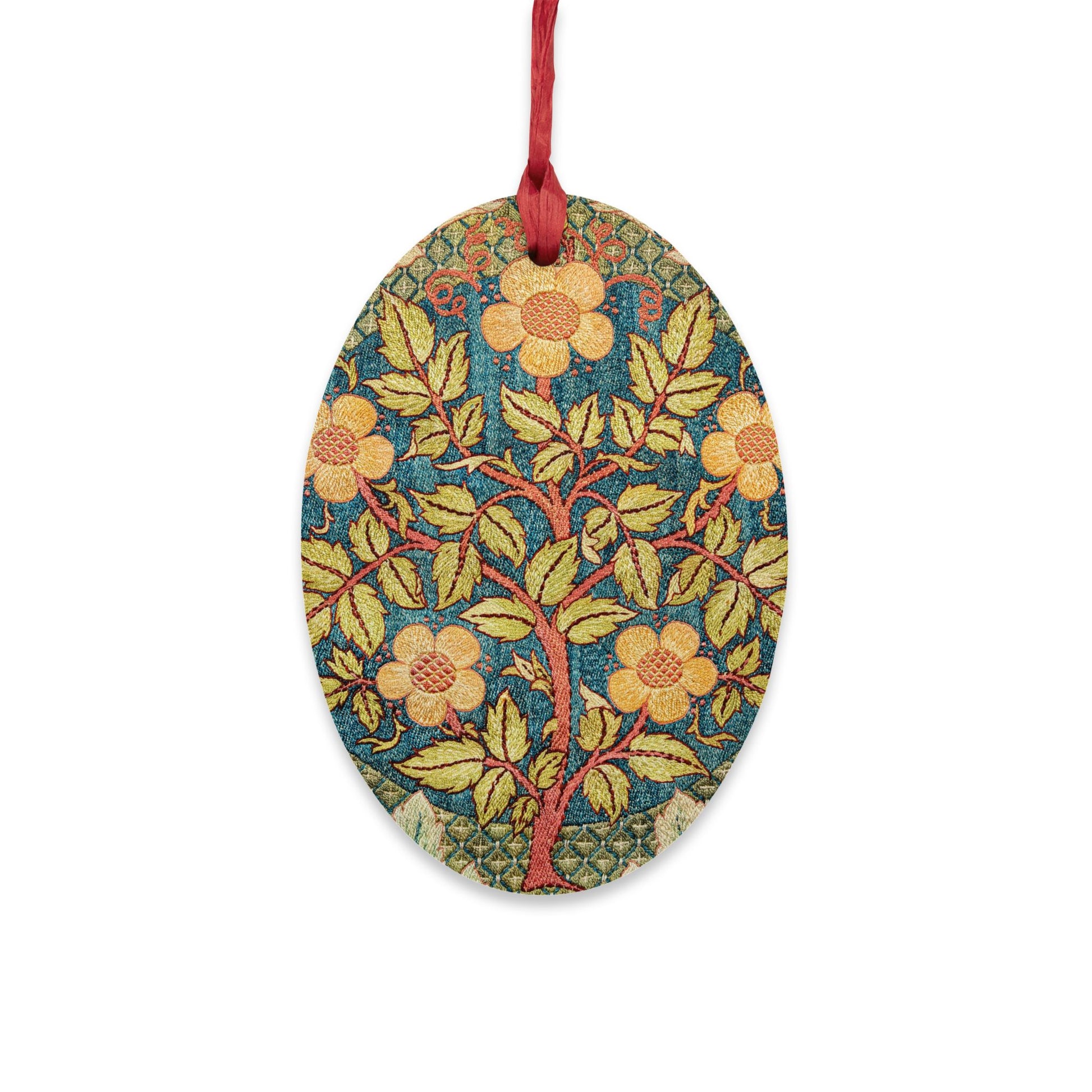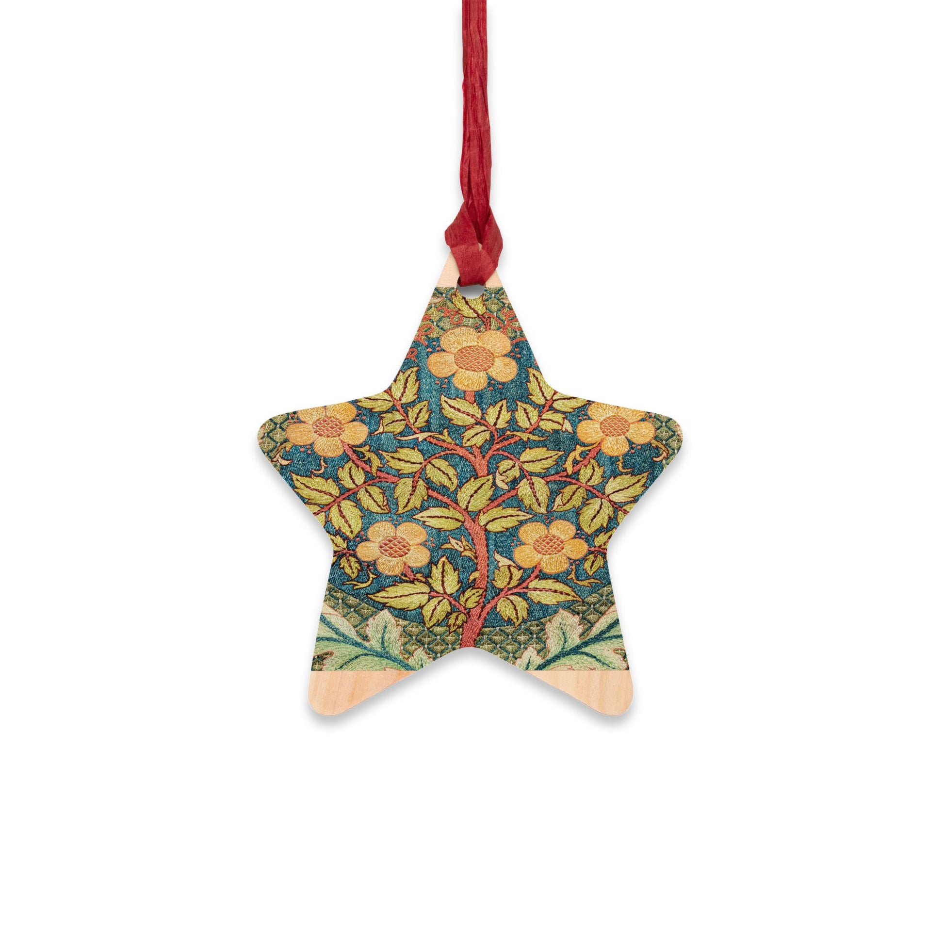 Wooden Christmas Ornaments inspired by William Morris - Rose Wreath Collection